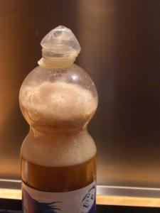 • Schon nach etwa 20 Minuten sollte der Gärprozess einsetzen. Der freie Raum in der Flasche verhindert ein Überschäumen.